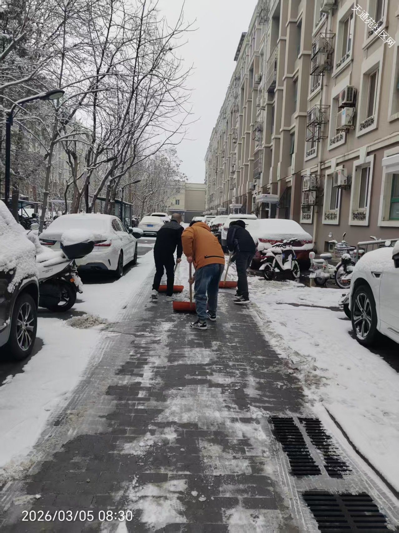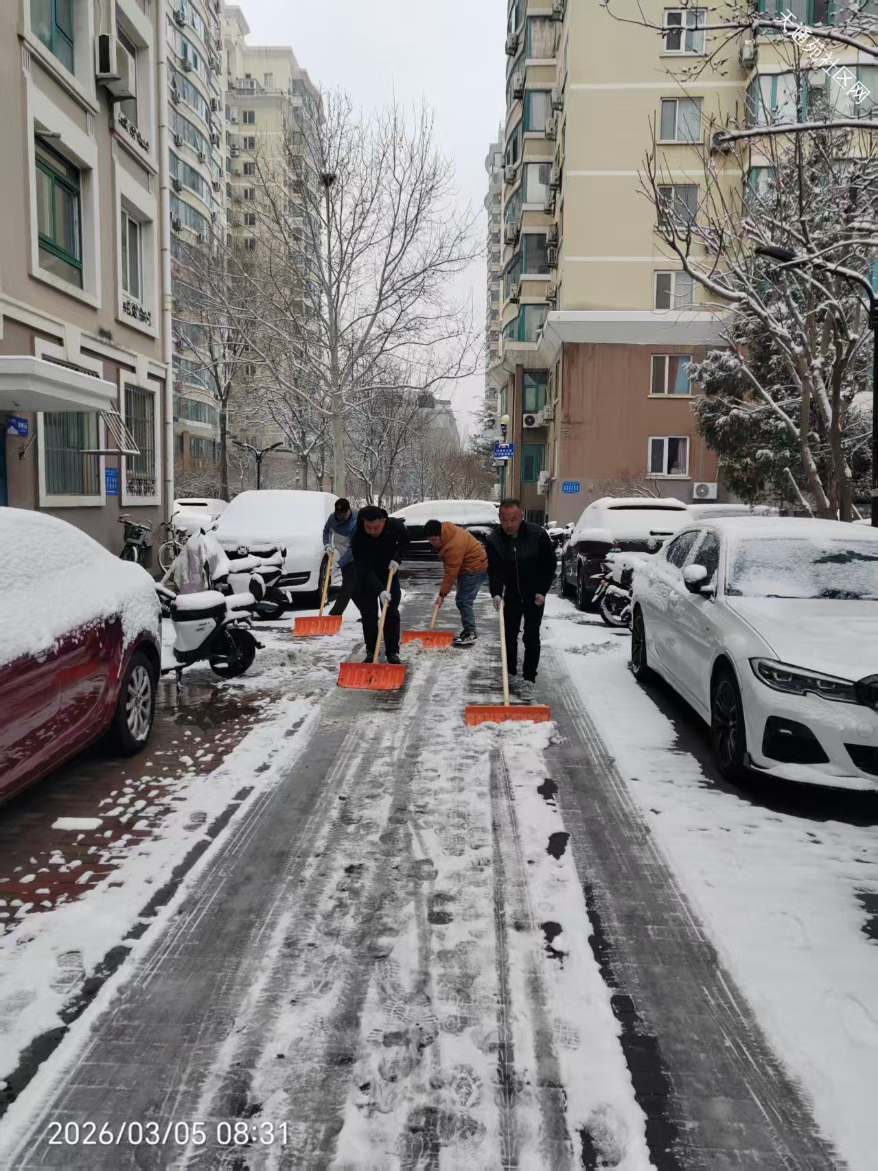 清理积雪:物业工作人员会定期对小区内主要道路和公共场所的积雪进行清理,但也需要您的配合与支持。请勿随意堆放杂物,以免影响清雪工作进度。