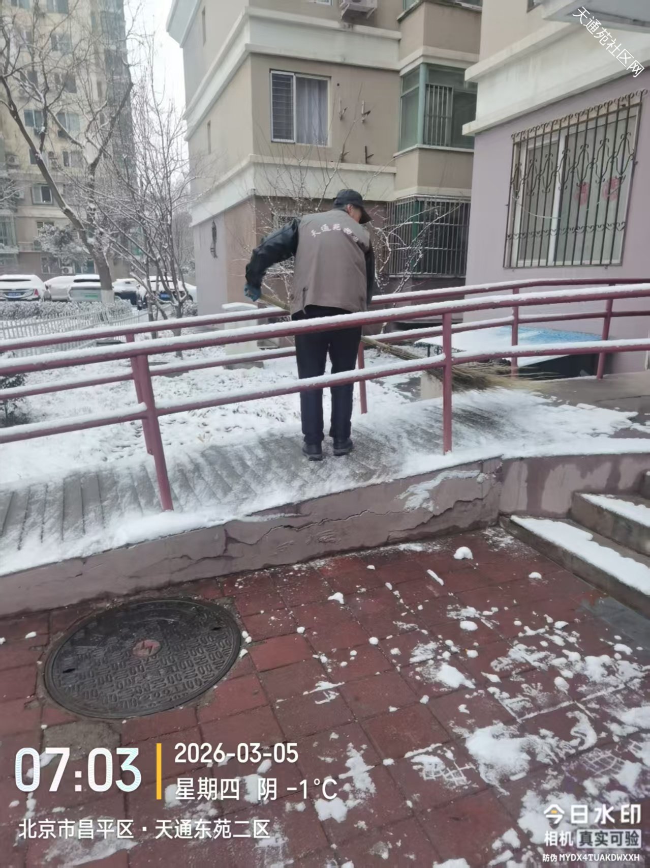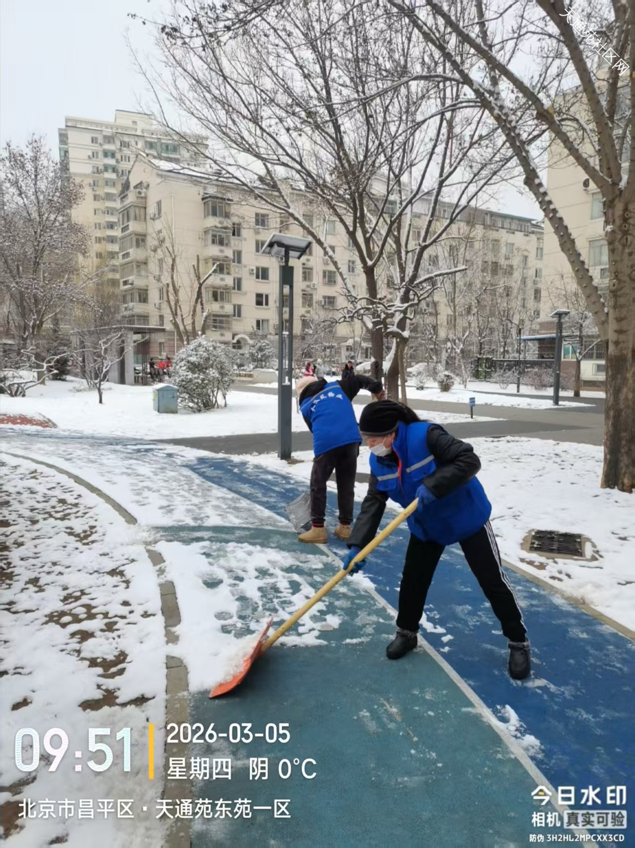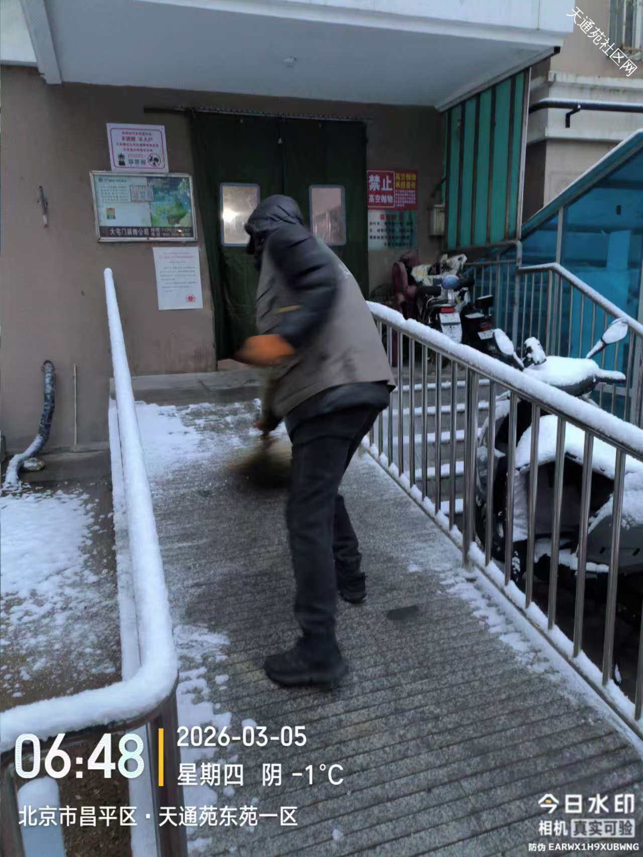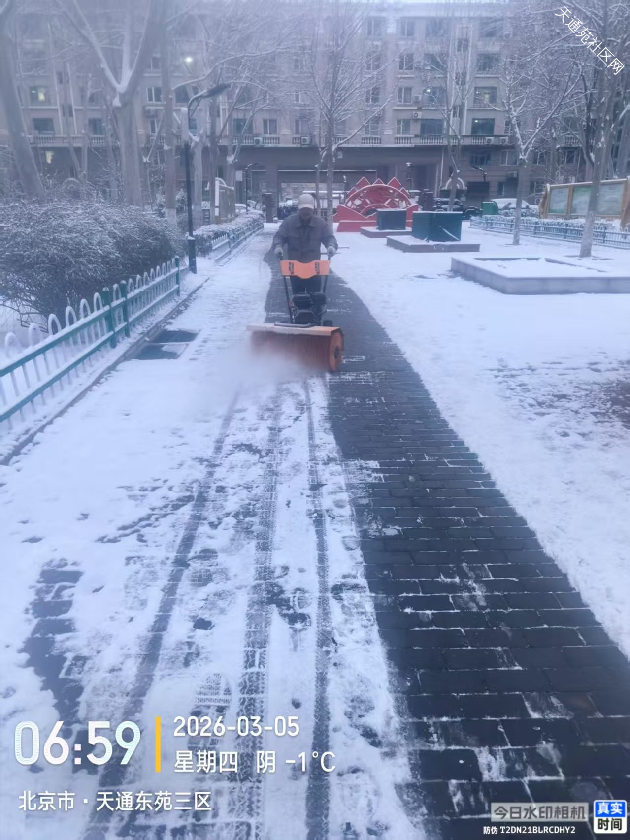小雪逢惊蛰节气,对绿植返青非常有利,但给业主出行带来不便,东区保洁绿化分队及时组织员工清扫路面积雪,保障业主出行安全。
