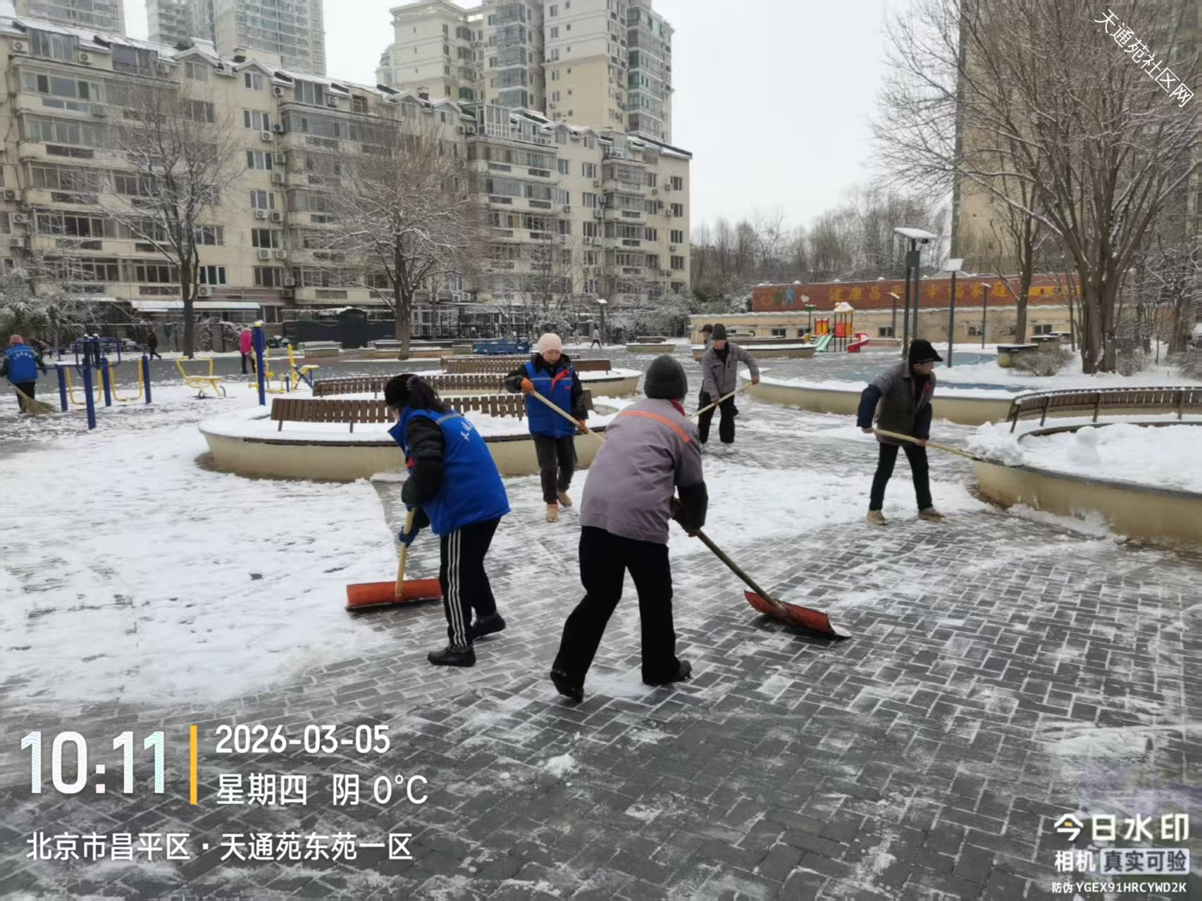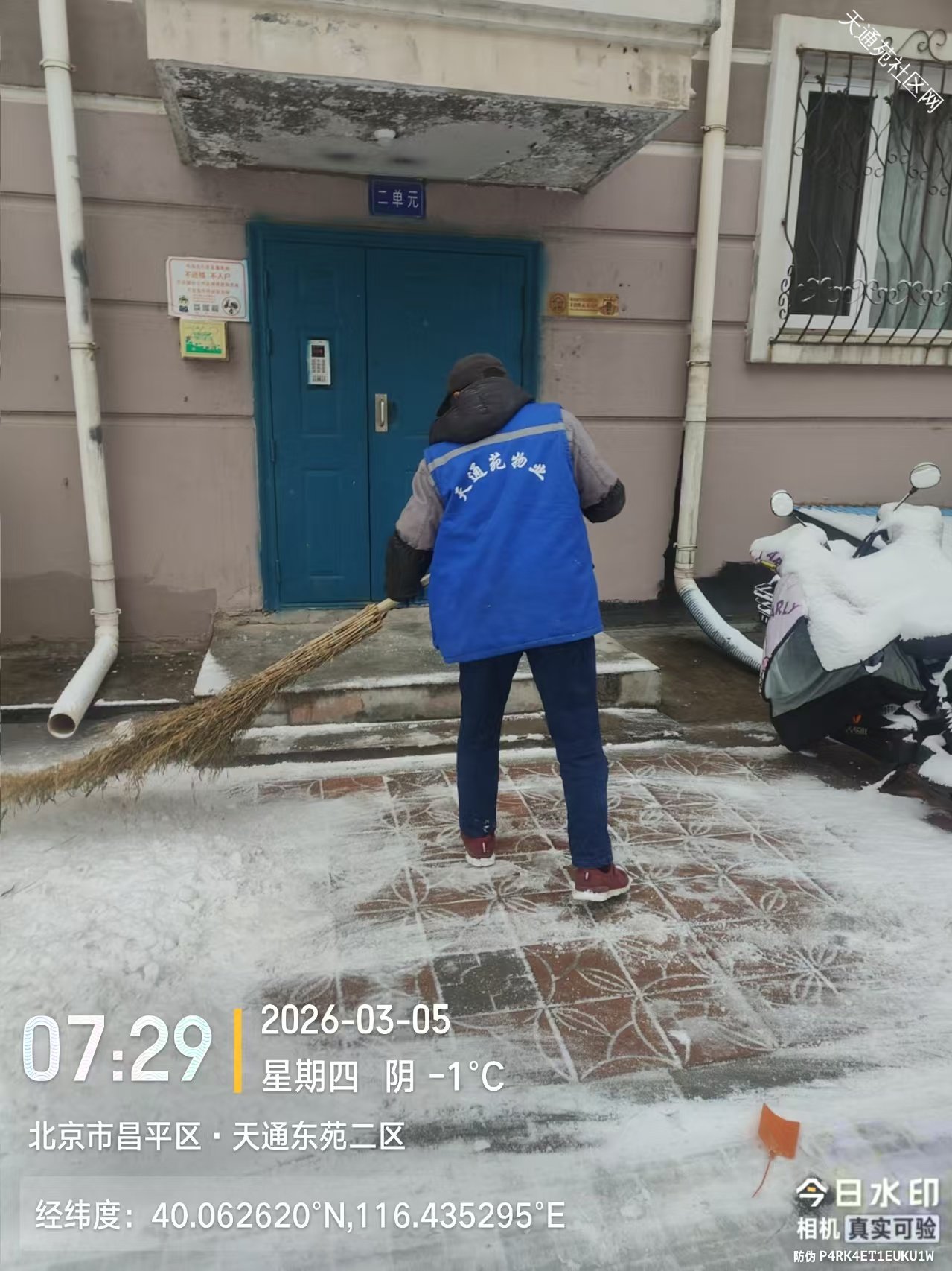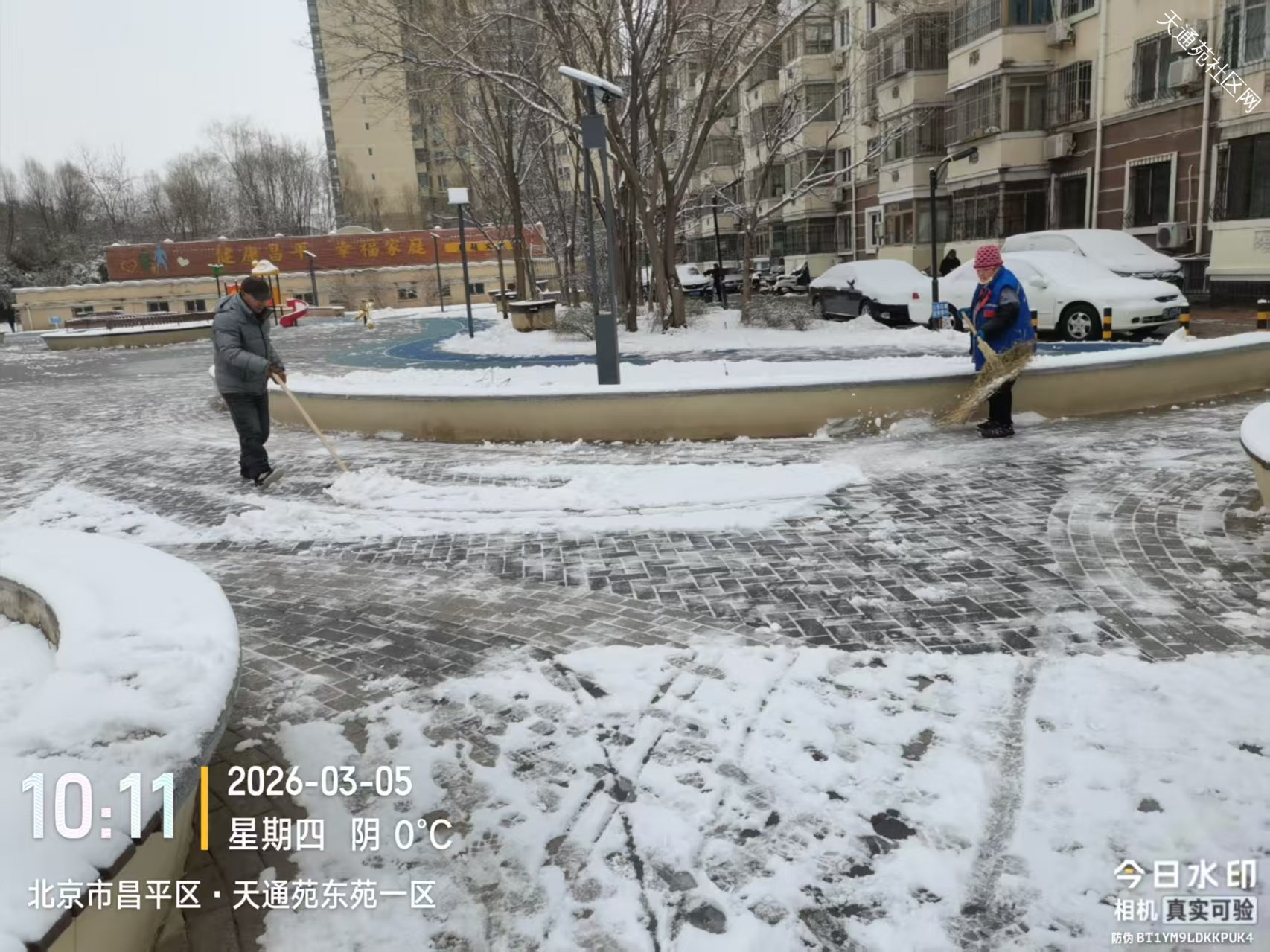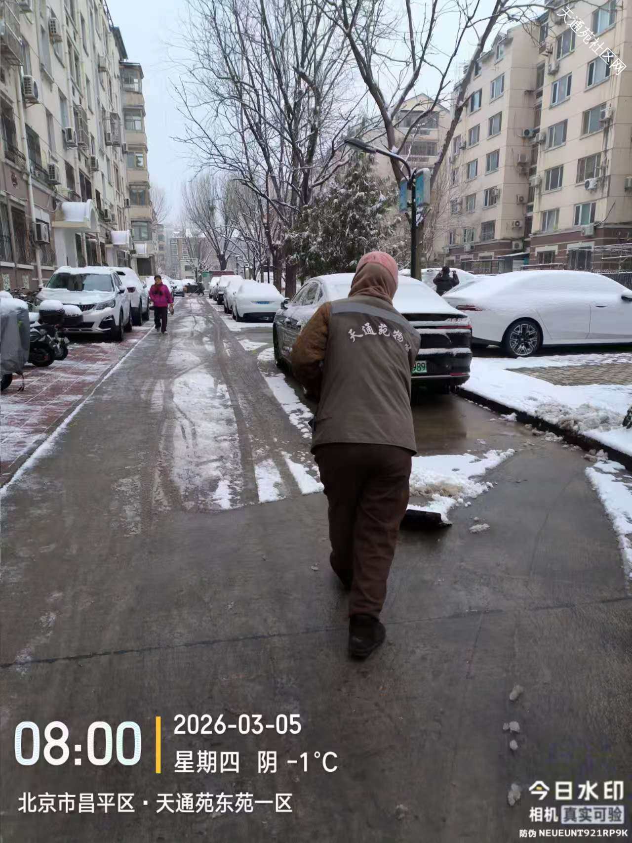 小雪逢惊蛰节气,对绿植返青非常有利,但给业主出行带来不便,东区保洁绿化分队及时组织员工清扫路面积雪,保障业主出行安全。