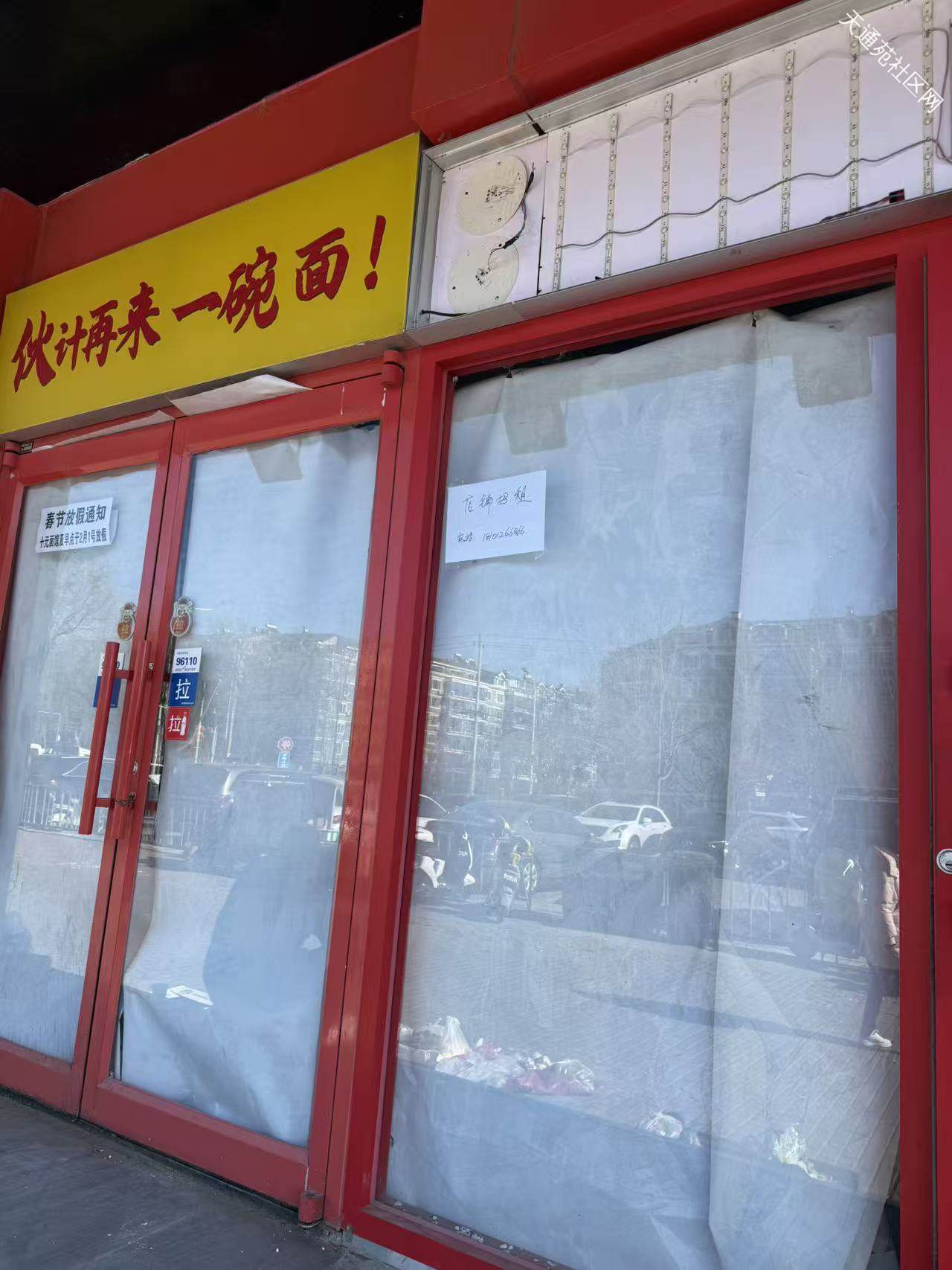 东三国泰底商的10元面馆关了,门上还贴着春节放假,开始招租