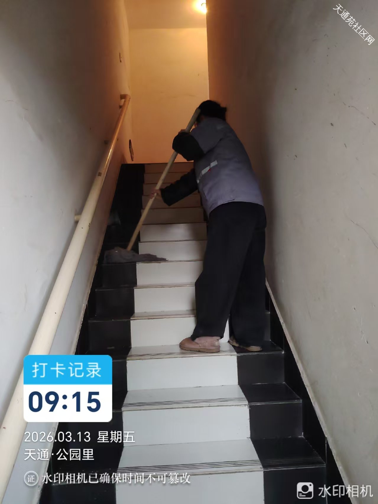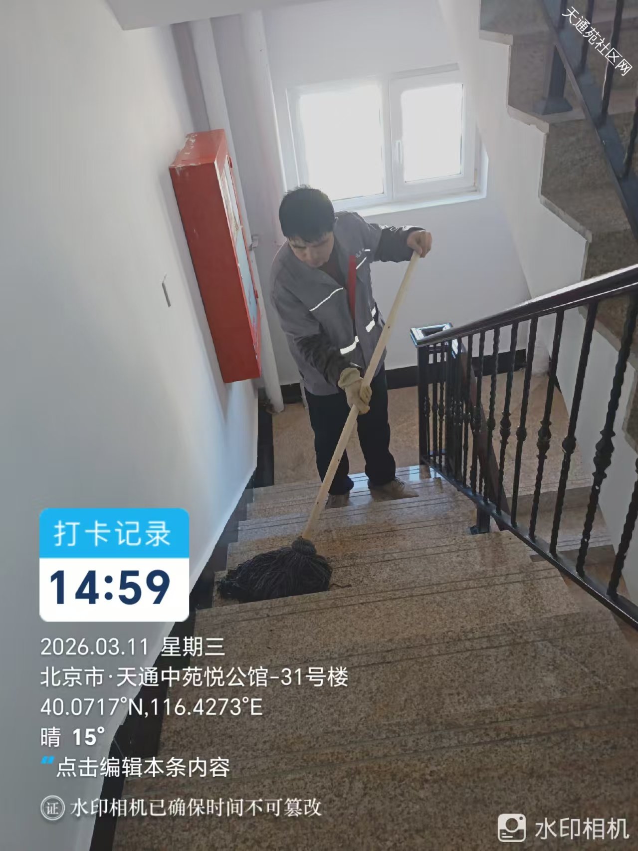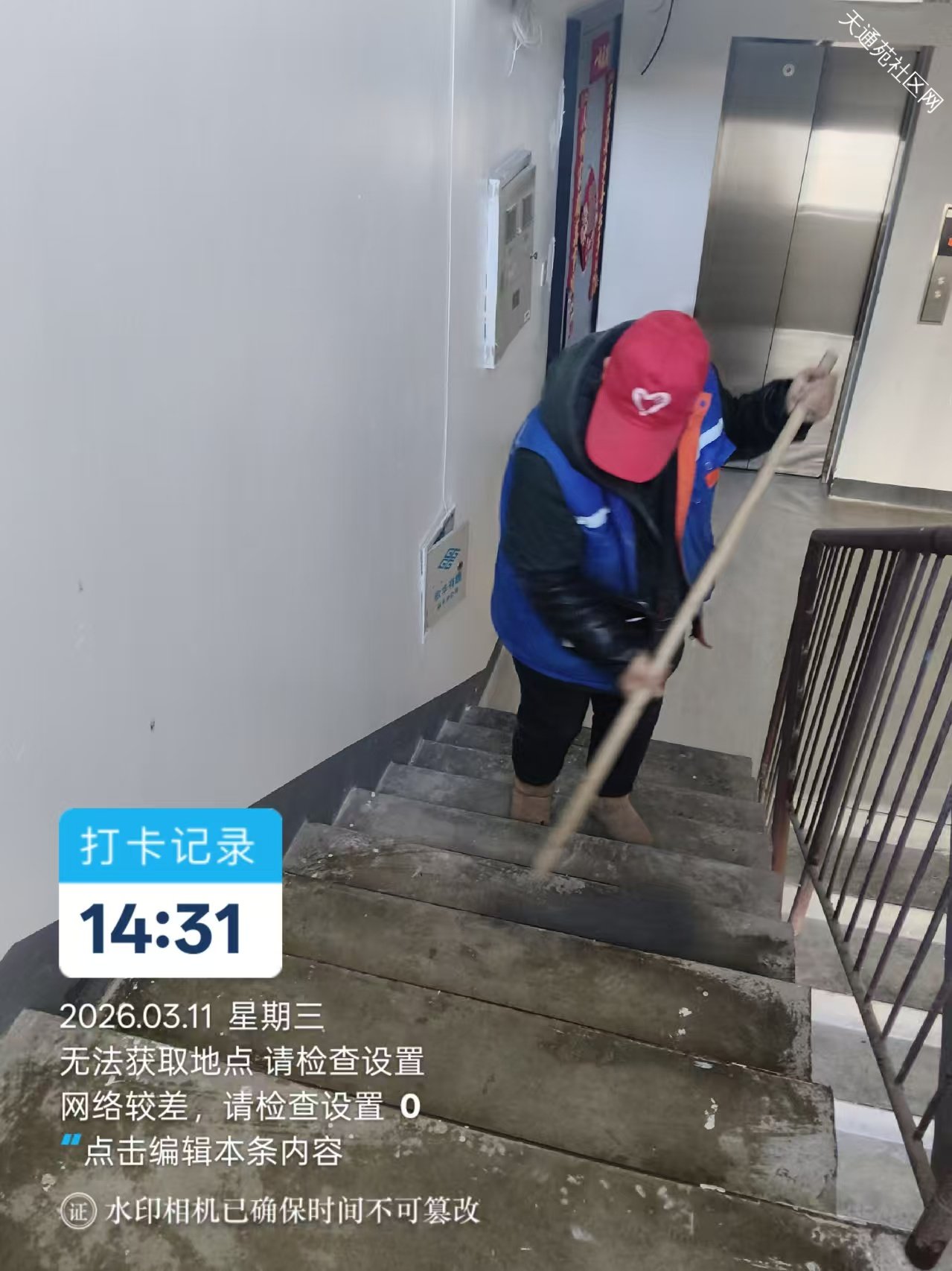 ” 中苑保洁绿化分队对小区楼内外公共区域垃圾及杂物进行清扫。少一处垃圾,多一片净土。维护绿色家园,共创美好环境。”